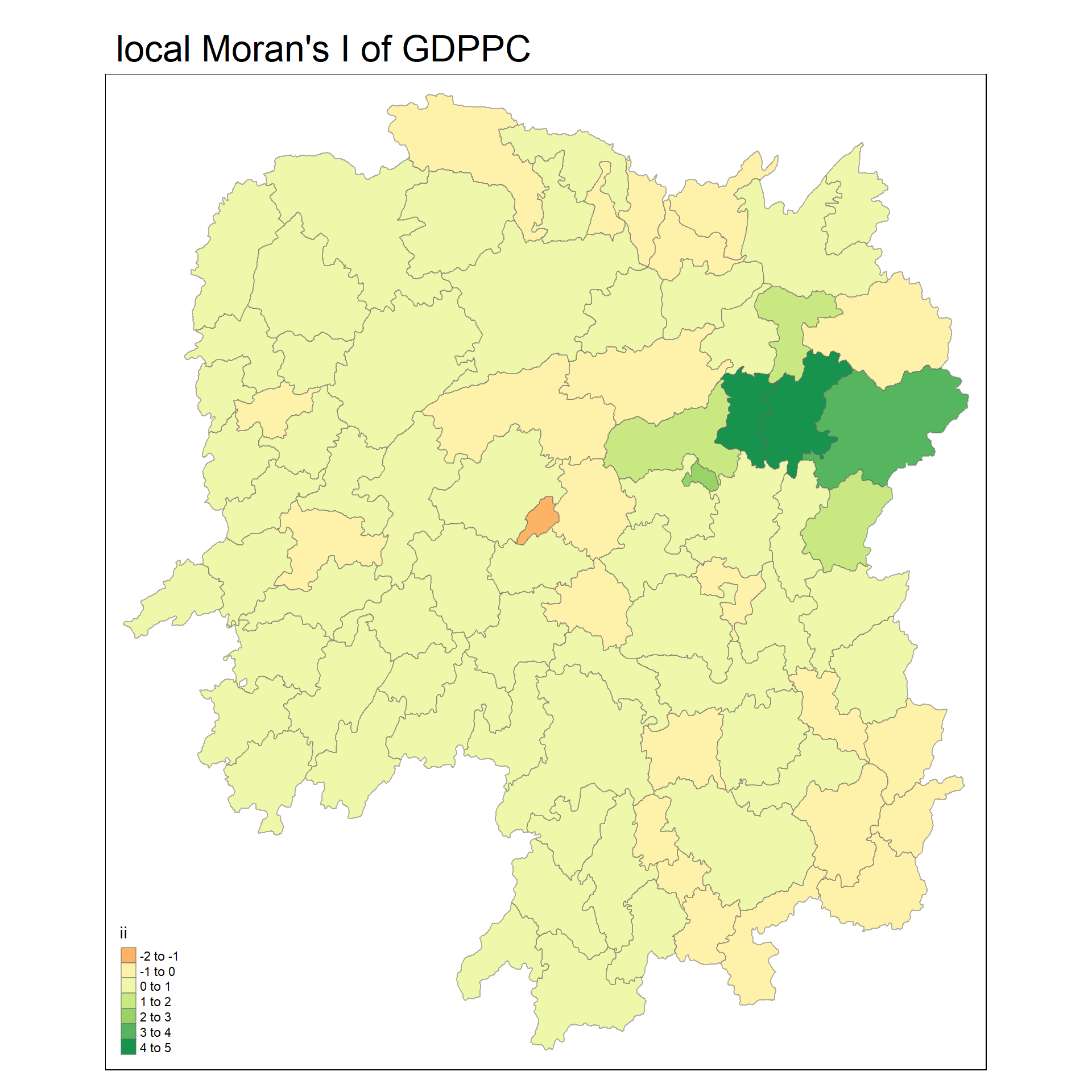 tm_layout(main.title = "local Moran's I of GDPPC",